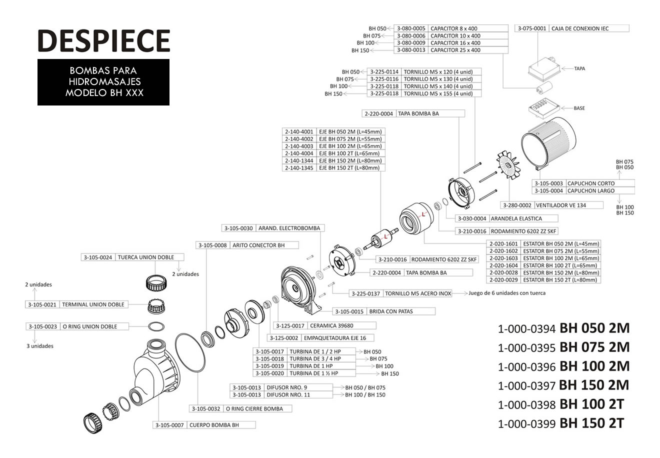 La serie BH X está equipada con un motor normalizado IP 54 con cuerpo de aluminio extruido; la serie BH XXX posee en la zona del motor un cobertor de plástico que asegura una total protección contra líquidos corrosivos.